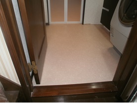新しい洗面化粧台設置し、床材も新しくリニューアル。 明るい脱衣場になりました